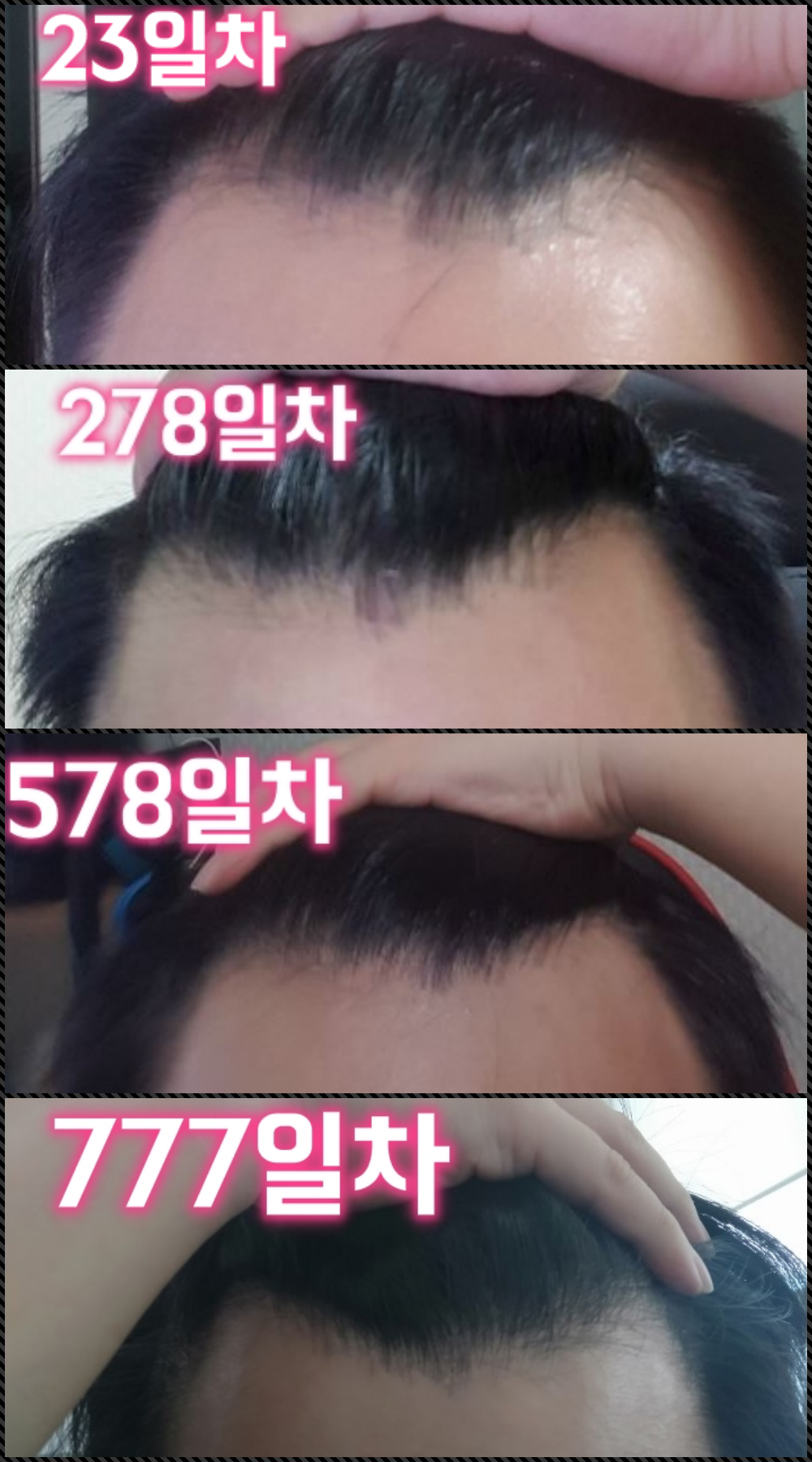 아래쪽 사진은 둘 모두 777일차 사진인데 왼쪽이 좀 더 이마가 1자라인으로 보이시죠 ?