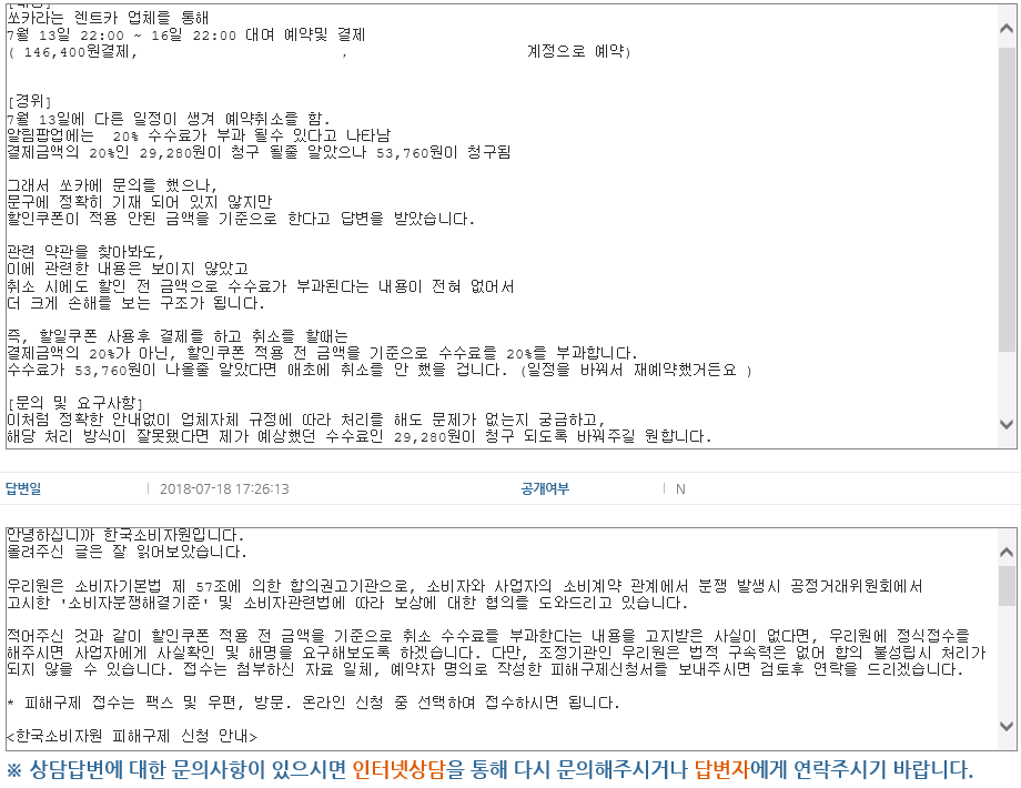 소비자원 신고 후기 ( 쏘카 렌트카 취소 수수료)소비자원 신고 방법 및 후기 ( 쏘카 렌트카 취소 수수료)