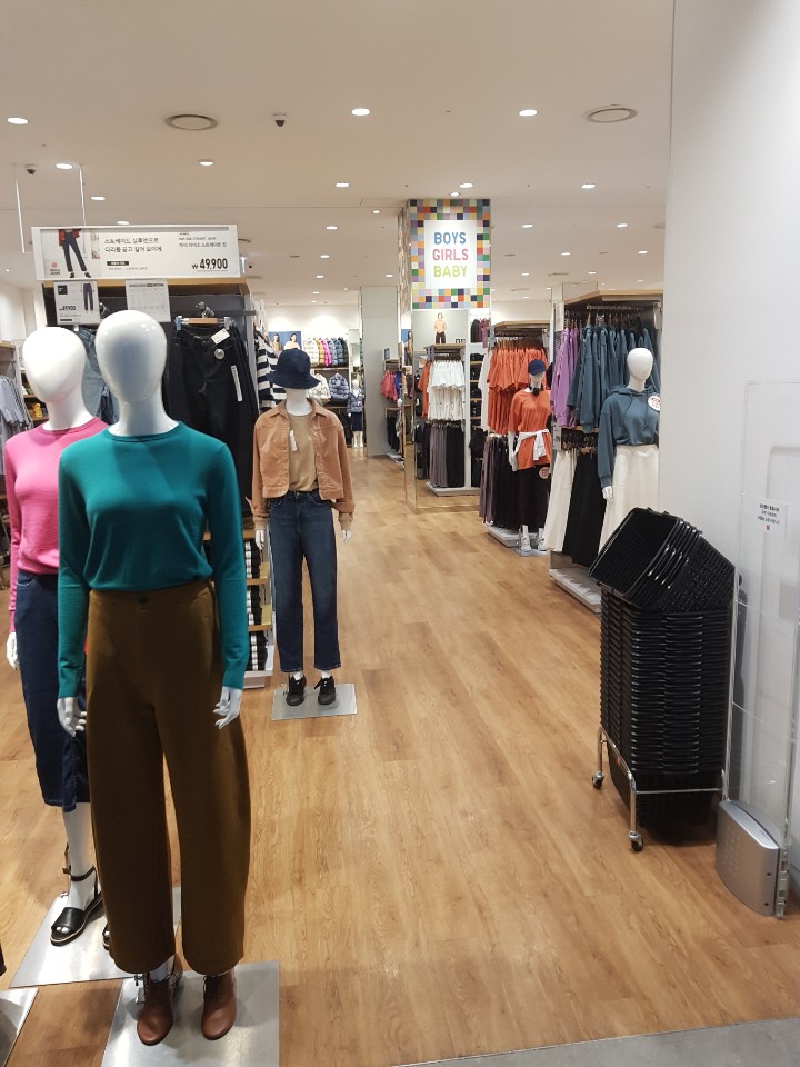 - 맞은편 지오다노매장은 유니클로매장 보다 훨씬 작은데 옷있는 곳마다 사람들이 서 있음 (최소 20명이상)