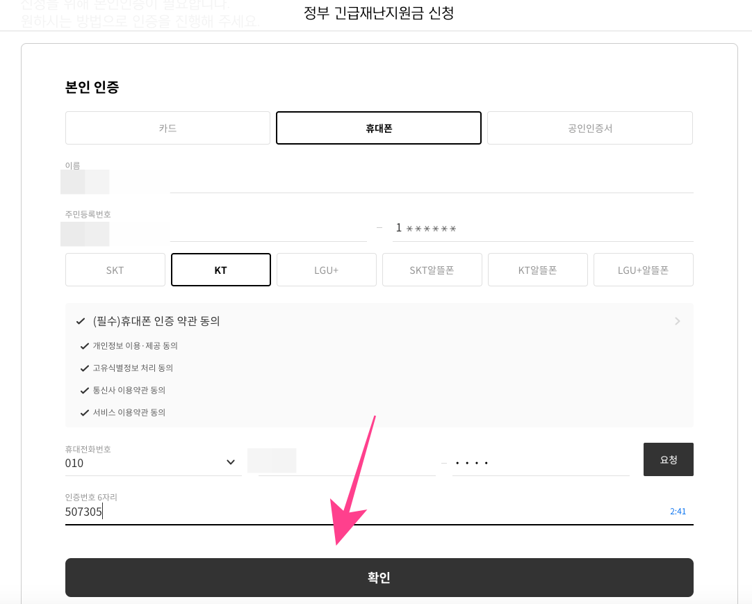 모든 사항들이 필수로 동의를 해야해서 전체동의를 눌러줍니다.