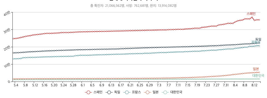 그래도 위에 언급한 인도/미국등에 비하면 비교적 안정적인 상태를 유지하고 있네요.