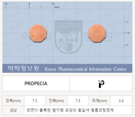 현재 탈모약으로 시판 중인 프로페시아 용량 1mg입니다.