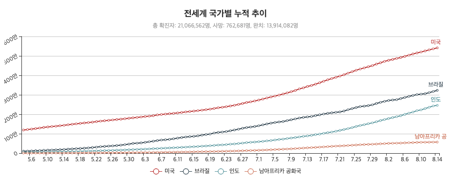 - 2020.08.14 전세계 코로나 현황 2차 확산?!(인도/브라질/남아프리카 급등)