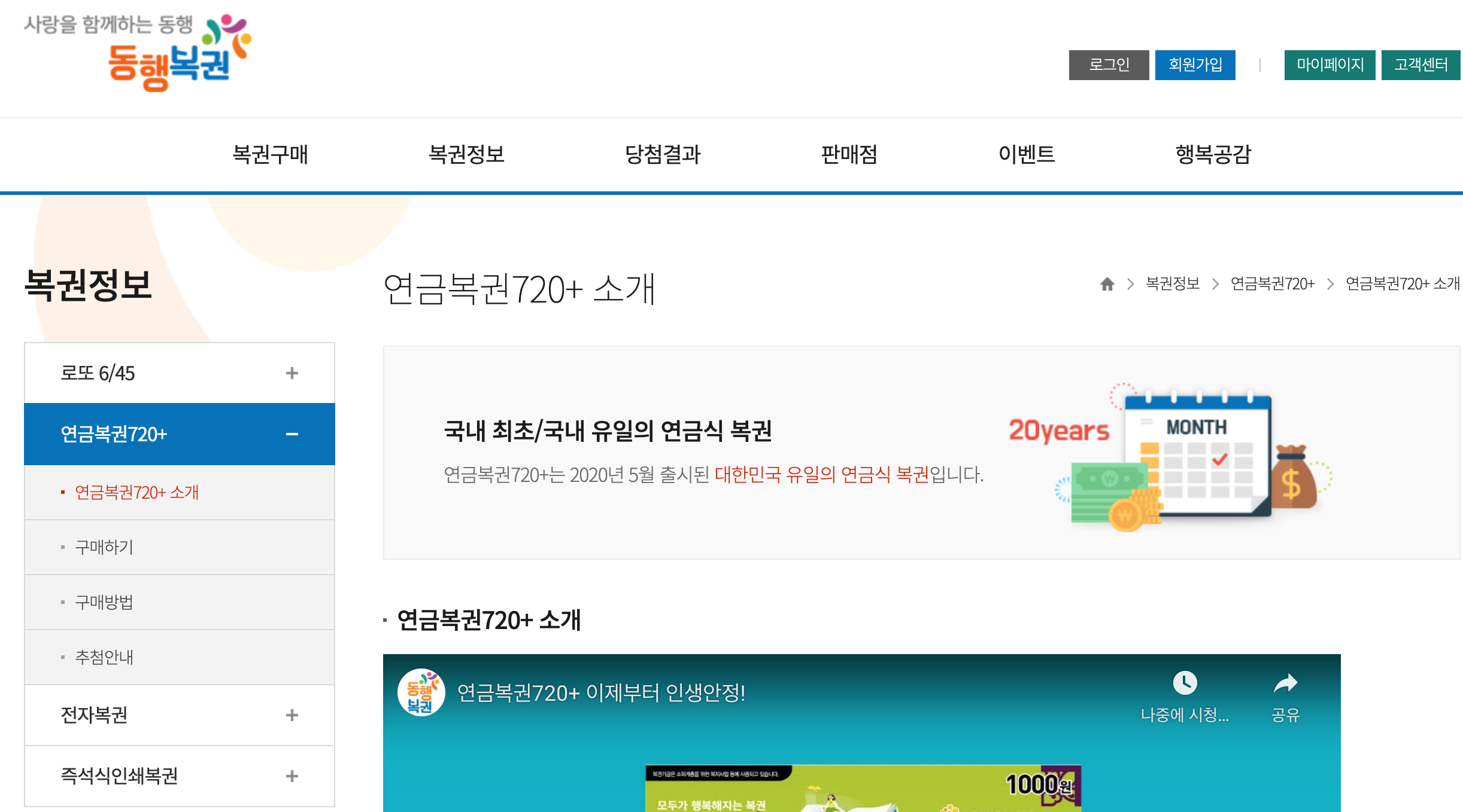 연금복권720+는 2020년 5월 출시된 대한민국 유일의 연금식 복권입니다.